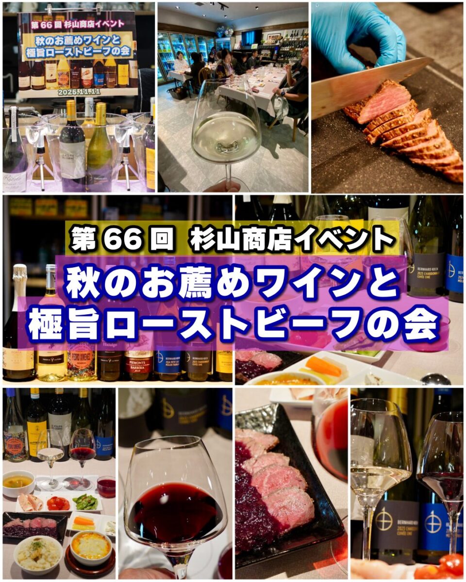 11月の杉山商店イベントは「秋のお薦めワインとローストビーフを楽しむ会」を開催しました。お陰様で今回もご参加いただいたご新規様&常連様の皆さんが笑顔で楽しんで下さって感謝感激のひと時でした♪