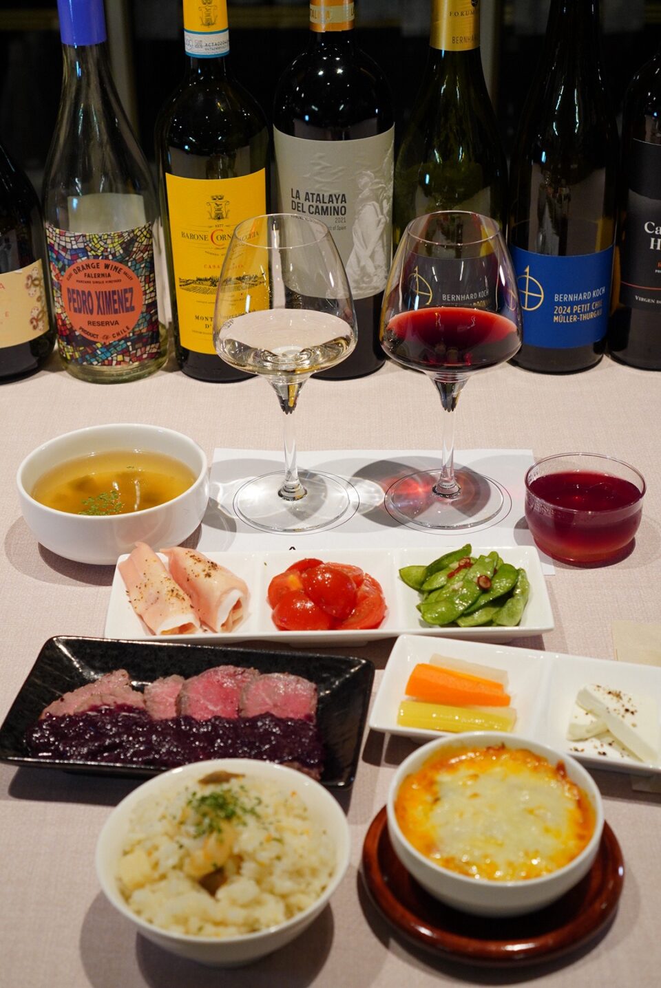 個性溢れる10種類のワイン(泡・白・オレンジ・赤)と奥様シェフのローストビーフをメインとしたコース料理を余すことなくじっくり楽しんでいただきました。まずは泡ワインの旨味の微発泡白とチャーミングな泡ロゼの2種類から飲み比べスタート。次に掘り出し初入荷の爽やかな軽辛口の白と、比較的飲みやすいオレンジワインの飲み比べ。そしてミディアムなコクの個性ある魅惑の赤ワイン2種。再度、白に戻ってドイツの日本人女性醸造家が醸す魅力的な白2種をご堪能。最高にメインのローストビーフに合うコク旨フルボディの上質な赤ワイン2種類をじっくり美味しく味わっていただきました。前半は前菜の料理に合わせて軽めでいて果実味豊かな泡・白・赤ワイン。後半はより味わいのボリューム感が豊富で余韻の長めのワインを主にご提供させていただきました。個性ある味わいの振り幅が極端な飲み比べをすることでインパクトある楽しい発見の場になって貰えるようにワインをチョイスさせていただきまきた。今回も赤ワインに合わせてご用意したメイン料理の特製ローストビーフも合わせて皆様から美味しかった!と喜んでいただけて感無量でした。今年最後の店内イベントとして、ご参加くださった皆さんから嬉しいお声が聞けて、店長スギヤマ夫婦共々今回も素敵な笑顔の時間を堪能させて貰いました♪