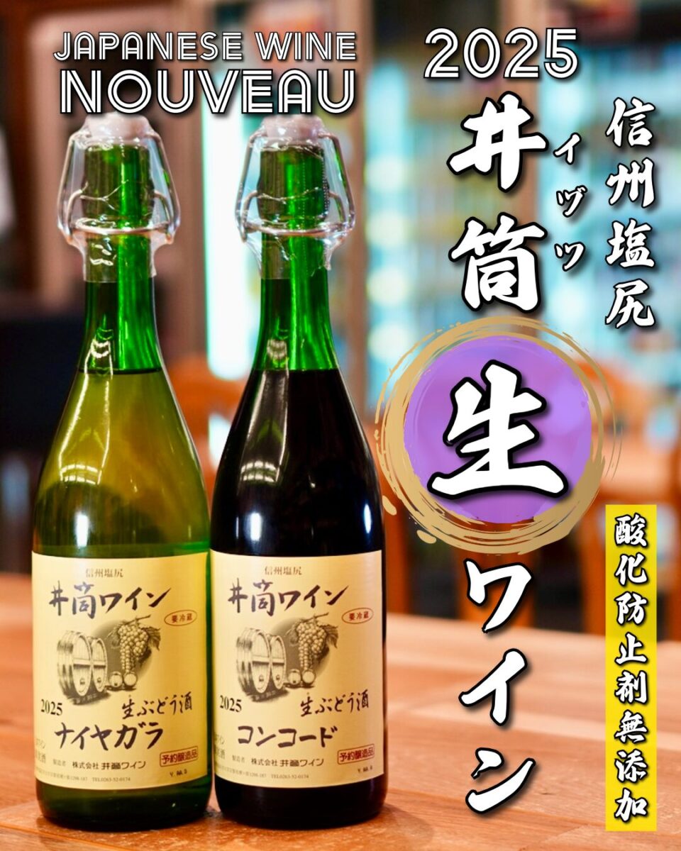 お待たせしました!今年も日本ワインのヌーヴォー(新酒)のオススメ、長野県塩尻の「井筒ワイン」の「無添加生ワイン」が入荷しました。