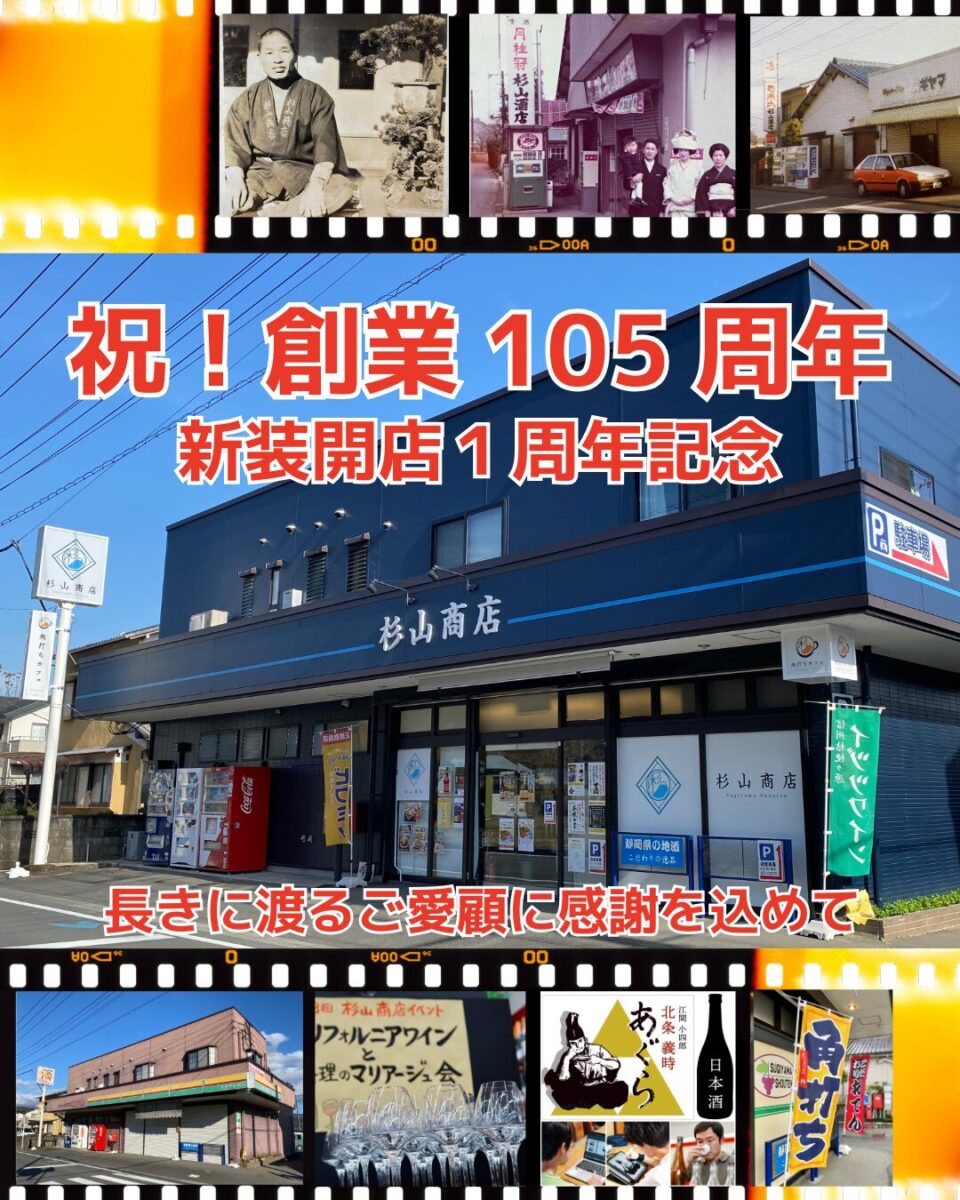 そんなわけで、当店のミッションである「お客様の笑顔の乾杯のお手伝い」に、これからも貢献できるように日々精進してまいりますので、これからも杉山商店をどうぞ宜しくお願い致します!先んず、創業105周年の「感謝還元セール」の当日は、たくさんのお客様のお越しを心よりお待ちしております♪